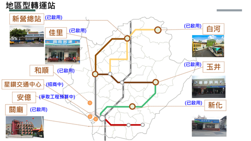 已啟用共4座:麻豆轉運站、臺南轉運站、新營轉運站、永康轉運站
