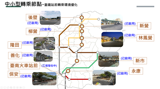 中小型轉乘節點:臺鐵站前轉乘環境優化,聚落中心、通勤火車站提供服務